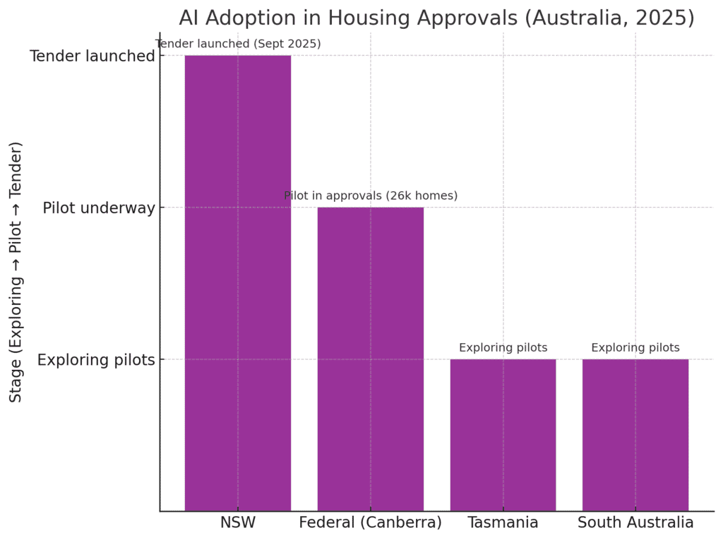 Governments are racing to use artificial intelligence (AI) to speed up housing approvals. In September 2025 the NSW government launched a tender for an AI system to review major development applications, a move labelled a “gamechanger” by planning minister Paul Scully. Federal Treasurer Jim Chalmers has since urged other states to follow suit. The goal is to cut red tape: for example, Canberra plans to fast-track the assessment of more than 26,000 homes currently held up by environmental approvals and is “piloting AI to simplify and speed up assessments”.Tasmanian and South Australian authorities are also exploring AI pilots in planning.