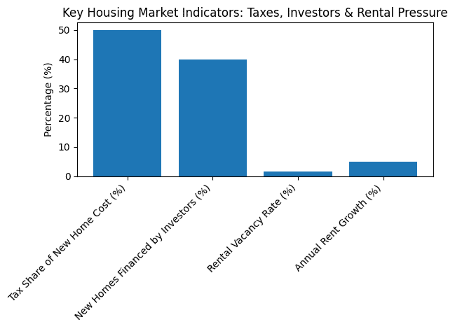 Impact on investors and renters. Investors currently buy a large share of new homes. Last year, about 40% of new houses were financed by investors, who also provide rental stock. HIA warns that if taxes on investors rise, some may pull back – “every investor that leaves the market represents one less rental property”. Australia’s rental market is already very tight (vacancy around 1.7%), and rental listings have fallen sharply. This shortage is pushing rents up – national rents are growing over 5% per year – meaning tenants face higher costs as investor participation slows.