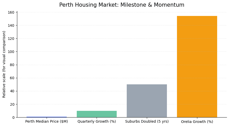 Perth’s housing market just crossed a major milestone. Recent data shows the median price of a Perth house is now about $1.08 million, up nearly 10% in the last quarter. That makes Perth the sixth capital city in Australia with a million‑dollar median price. Over the past five years, 50+ Perth suburbs have doubled in value – the southern Perth suburb of Orelia jumped by 154% alone. These headlines reflect a booming market, but from a buyer’s agent perspective, they also underscore how uneven growth and tight supply are reshaping buying strategies.